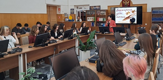 Всемирный день поэзии отмечается 21 марта. Но стихи в читальном зале Научной библиотеки звучали уже сегодня! Стихи на русском, адыгейском, армянском, азербайджанском, белорусском и других языках были понятны всем!